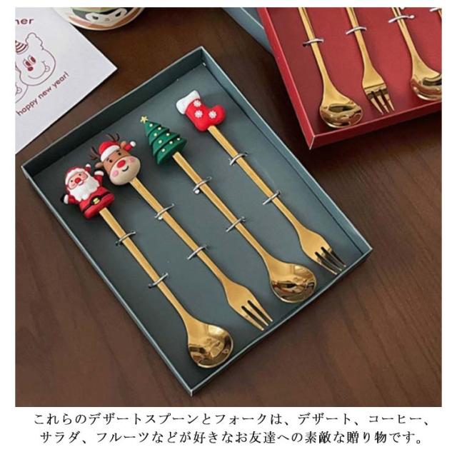 4本セット クリスマス スプーン フォーク セット ギフト用箱付き クリスマス ステンレス鋼 スプーンのフォーク エスプレッソ スプーン クリスマス スプーン セット ステンレス スチール ティー クリスマス プレゼント 食器セット