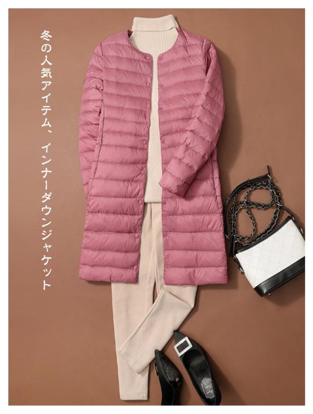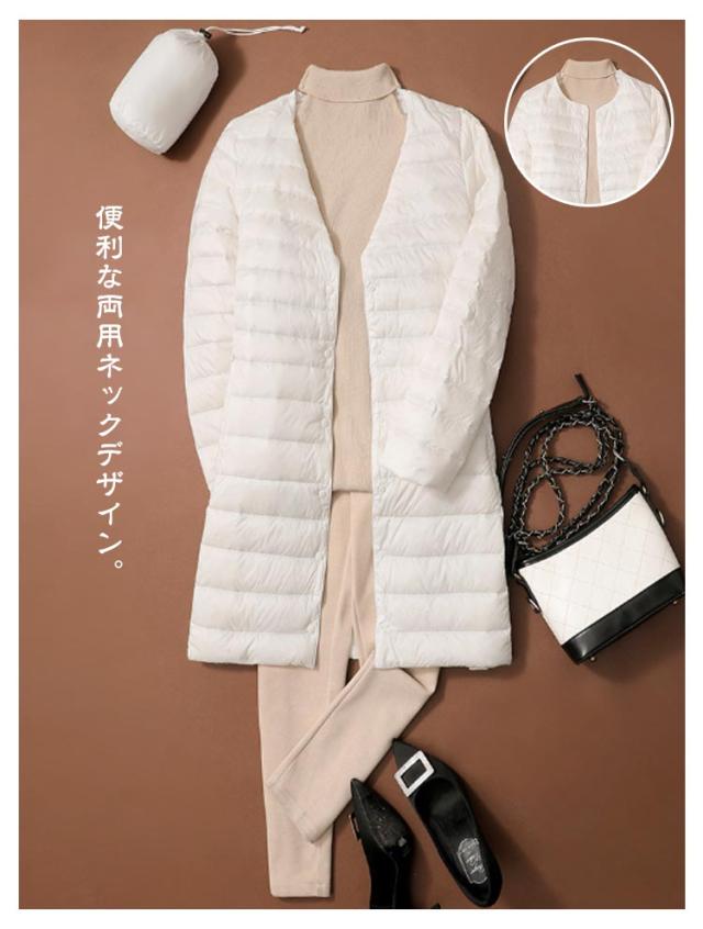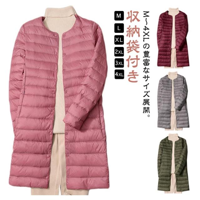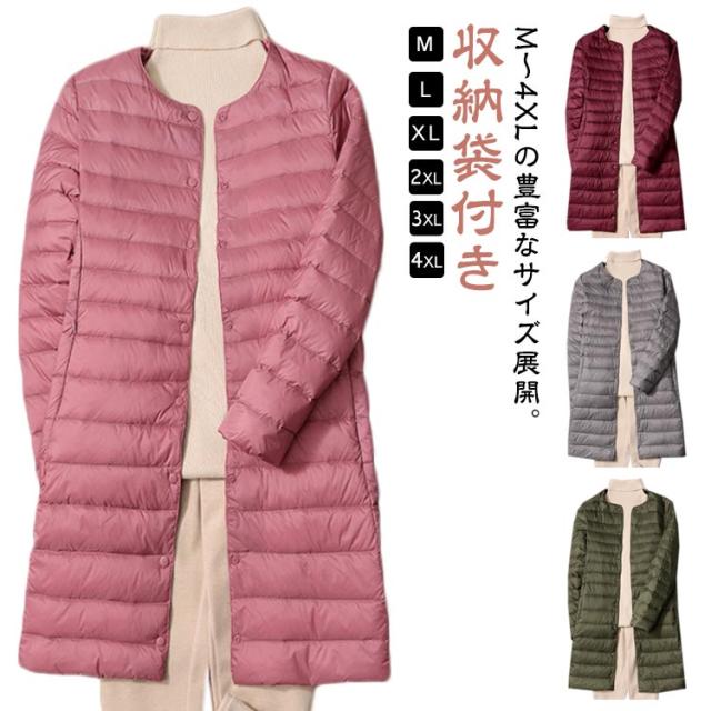 インナーダウン レディース ダウンジャケット 大きいサイズ 収納袋付き サイドジップロングジャケット カジュアル 防寒 重ね着 アウター 軽量 秋 冬 シンプル 冬服 秋 冬 アウター 柔らかい 暖かい おしゃれ カジュアル 大人 送料無料