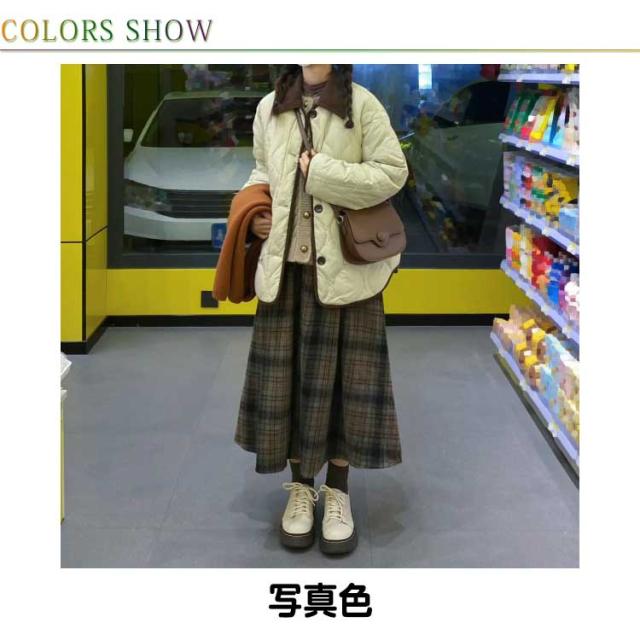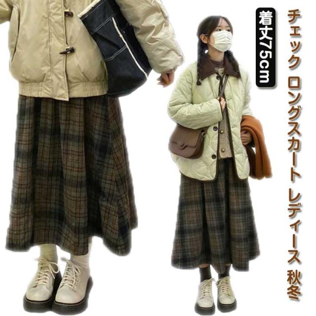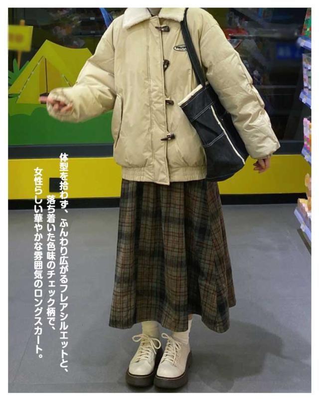 チェック ロングスカート レディース 秋冬 フレアスカート Aライン チェックスカート ウエストゴム ウール調 ガーリー レトロ 可愛い おしゃれ お洒落 普段着 着回し お出かけ 体型カバー フリーサイズ