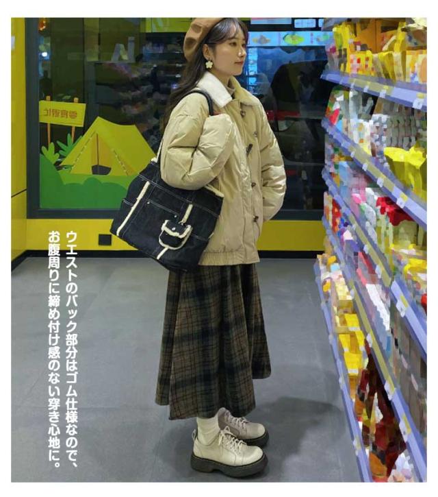 | 体型を拾わず、ふんわり広がるフレアシルエットと、落ち着いた色味のチェック柄で、女性らしい華やかな雰囲気のロングスカート。 温かみを感じる微起毛感のある素材で見た目から季節感のある着こなしに。 ウエストのバック部分はゴム仕様なので、お腹周りに締め付け感のない穿き心地に。 シンプルなのでトップスを選ばず、キレイめからカジュアルまで幅広いシーンで活躍します。 | |