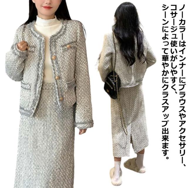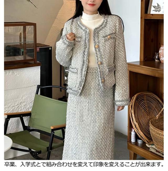 卒業式 入学式 結婚式 セレモニー フォーマルスーツ 七五三 ママ スーツ スカート スカートスーツ レディース ツイード スーツ 女性スーツ おしゃれスーツ セレモニースーツ ママスーツ ノーカラージャケット 卒業式 結婚式 母 母親 入園式 卒園式 30代 40代 50代