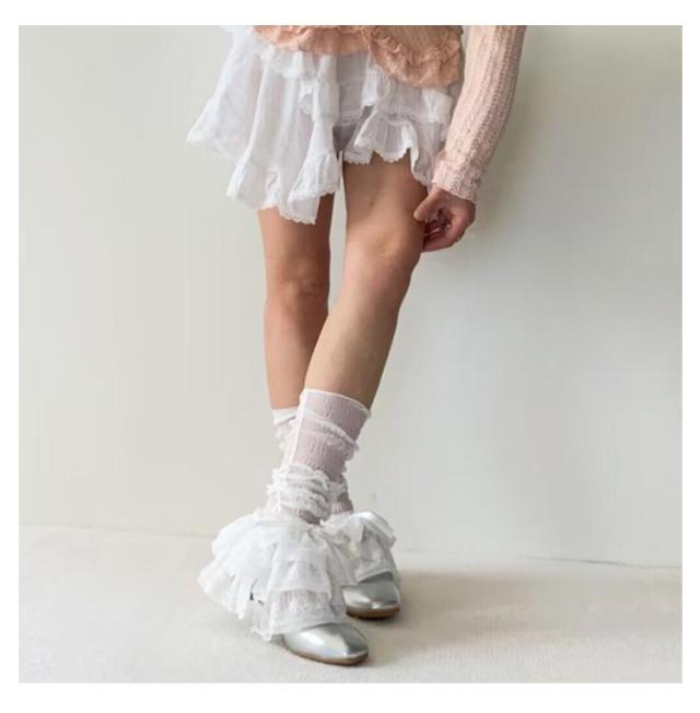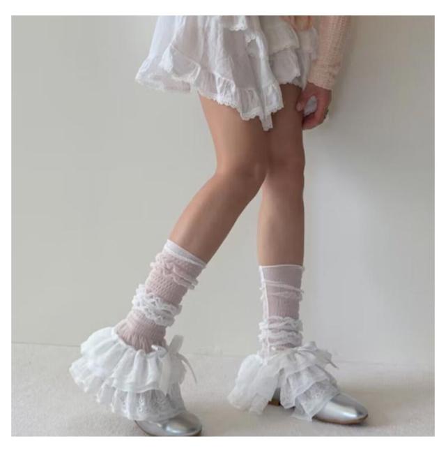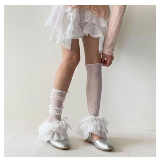送料無料 靴下 レディース おしゃれ フリル レース ハイソックス 白 ホワイト シースルー 透け感 薄手 ソックス レース 脱げない 美脚 レディース 靴下 靴 かわいい 姫系 ゴスロリ ロリータ 厚底 パンプス ローファー スニーカー 結婚式 発表会