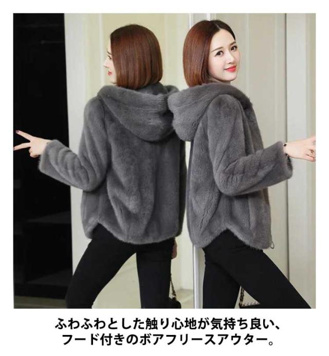 フリース ジャケット レディース アウター 秋 冬 ボア ブルゾン パーカー フリースパーカー フリースブルゾン フリースジャケット ゆったり ジップパーカー フード付き 秋服 冬服 ファスナー 通勤 通学 シンプル ふわふわ 防寒 コート