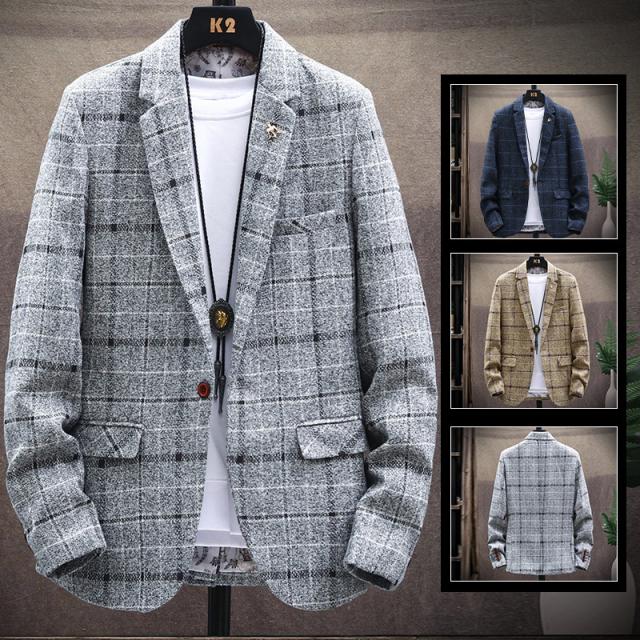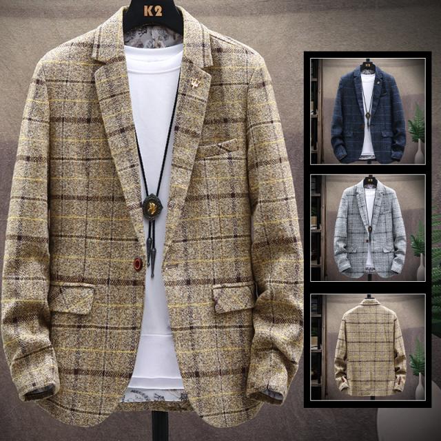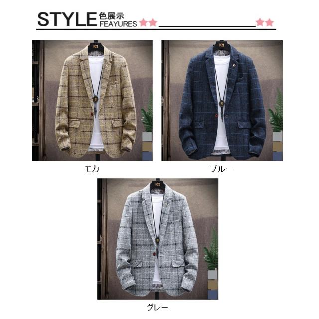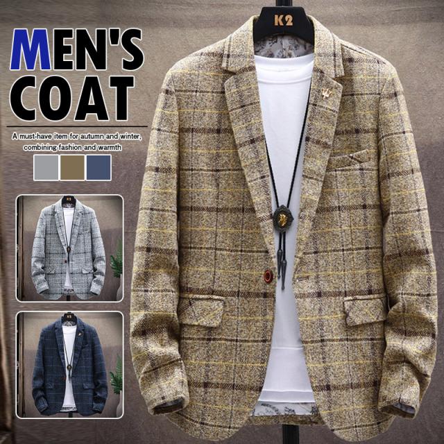 【2点で500円オフ!】テーラードジャケット メンズ ジャケット ビジネス アウター コート ブレザー 秋冬 チェク柄 スリム 紳