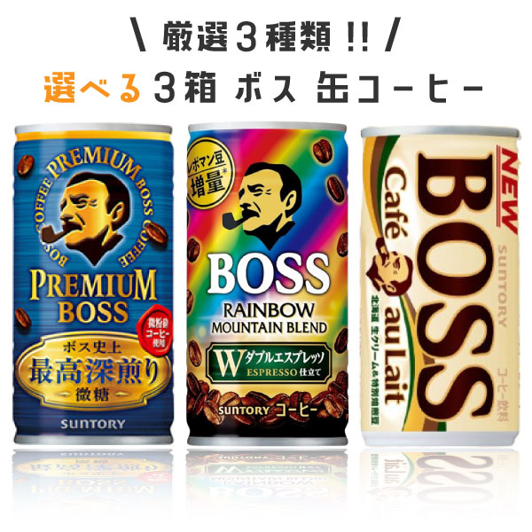 「厳選選べる3箱」ボス 缶コーヒー 185g ×30本×3箱 プレミアムボス微糖 レインボーマウンテン カフェオレ サントリー BOSS