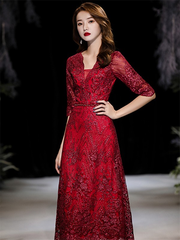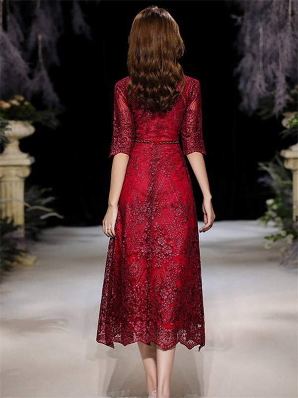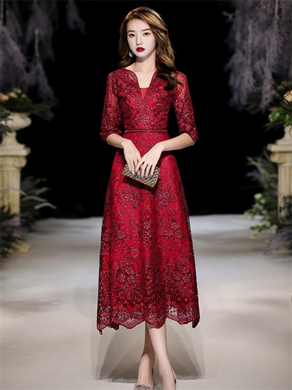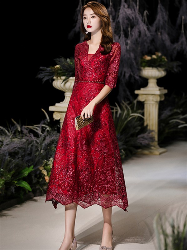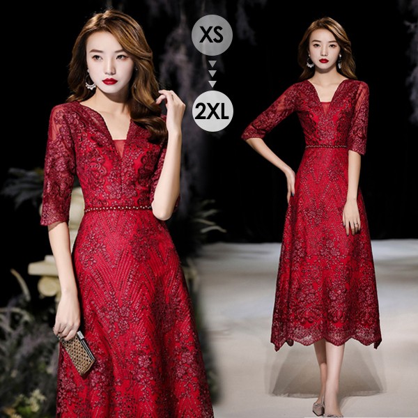 【商品名】ドレス 大人 ピアノ 発表会 ミモレ丈ドレス 演奏会 結婚式 母親 パーティードレス ミモレ丈 ワンピース フォーマルドレス イブニングドレス Aライン 30代 40代 50代 大きめ 親族 レース 袖あり 成人式 同窓会 お呼ばれ 演奏会用ドレス 二次会 フォーマル 披露宴