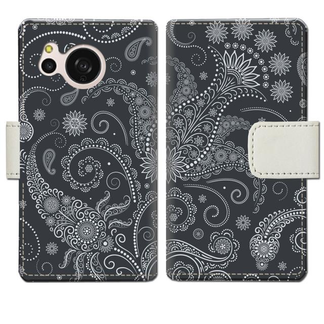 au AQUOS sense8 SHG11 docomo SH-54D 手帳型 ケース カバー アクオス センス8 手帳ケース 手帳カバー【ブラックペイズリーデザイン】