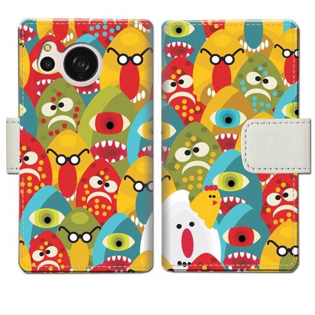 au AQUOS sense8 SHG11 docomo SH-54D ‐ Eggモンスターデザイン - 手帳型 スマホケース 手帳ケース 手帳カバー スマホカバー
