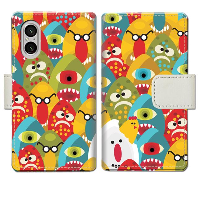 au Xperia 5 V SOG12 docomo SO-53D XQ-DE44 ‐ Eggモンスターデザイン - 手帳型 スマホケース 手帳ケース 手帳カバー スマホカバー