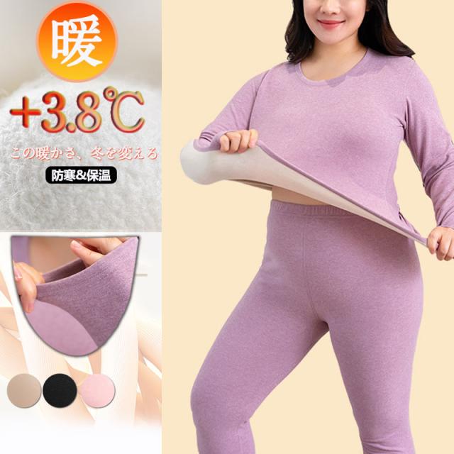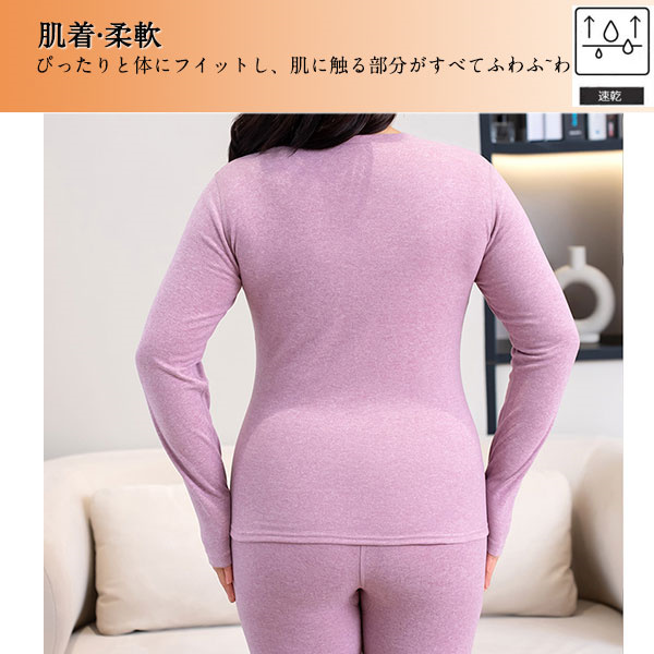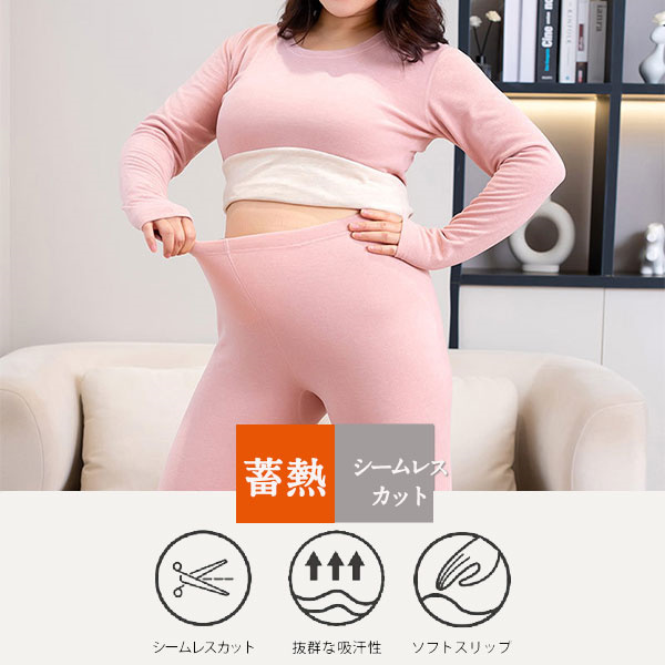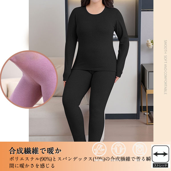 インナーウエア レディース インナーヒート 保温インナー 下着 発熱インナー ランドネック 肌着 厚手 吸湿 ストレッチ 上下セット 秋冬