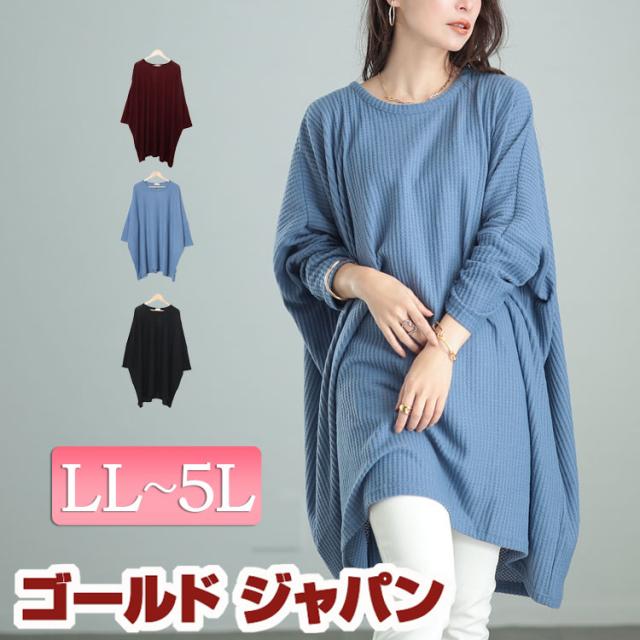 春新作 大きいサイズ レディース チュニック ワッフル起毛ポンチョ風チュニック 長袖チュニック 長袖 ロング ドルマン ワッフル 起毛 ポンチョ風 ストレッチ 伸縮 ドロップショルダー Vネック 秋服 冬服 春 LL 2L 3L 4L 5L ブラック 黒 グリーン ボルドー ゴールドジャパン