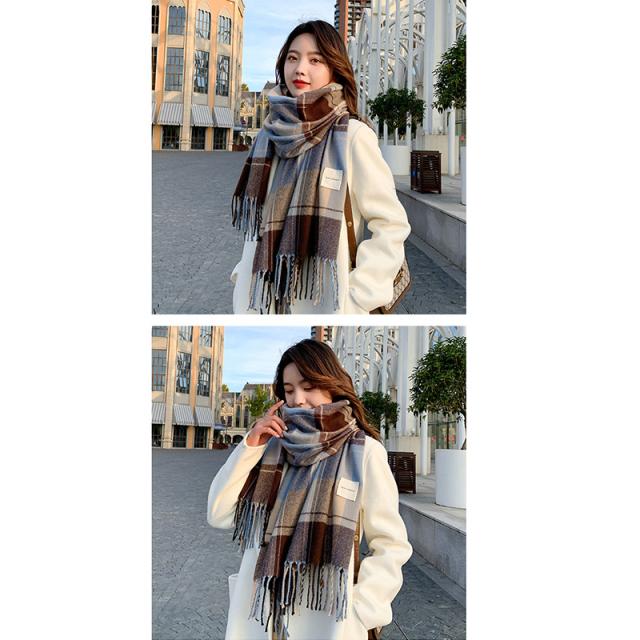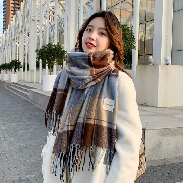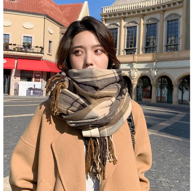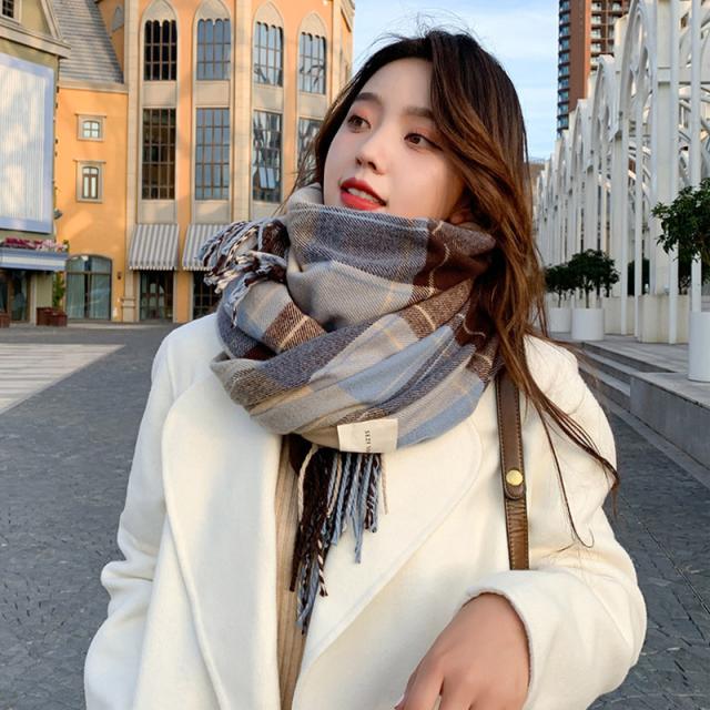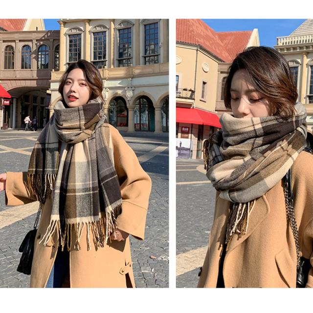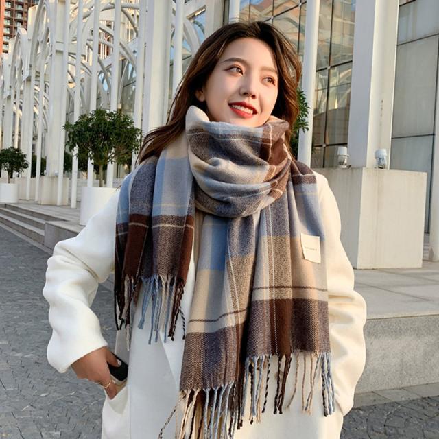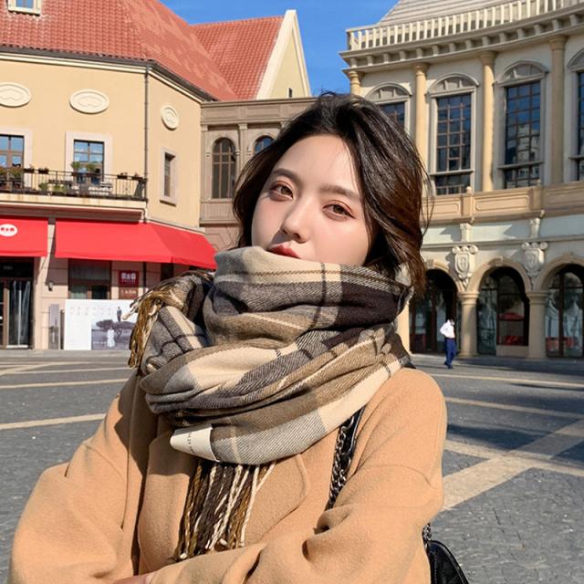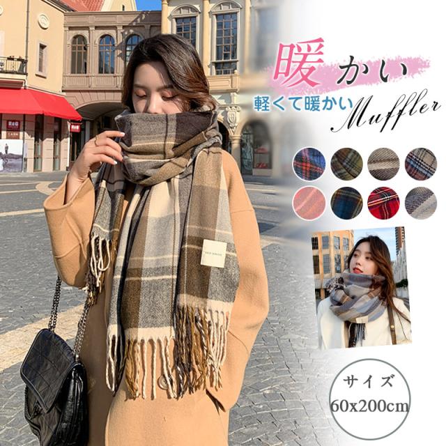 リバーシブルマフラー ストール ショール 防寒保温 チェック柄 フリンジ オルチャン プチプラ 暖かい 肌触りいい韓国風