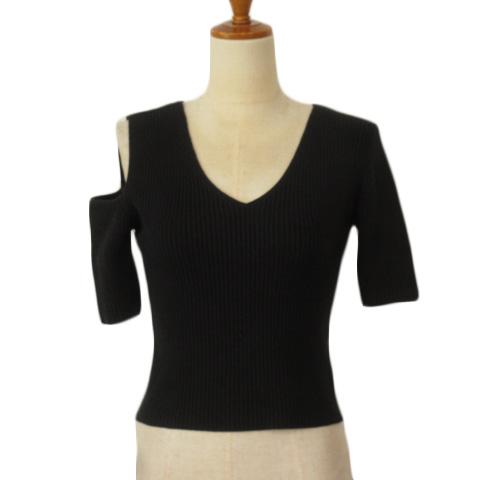【中古】エモダ EMODA バイアスリブフィットトップス F 黒 ブラック レディース