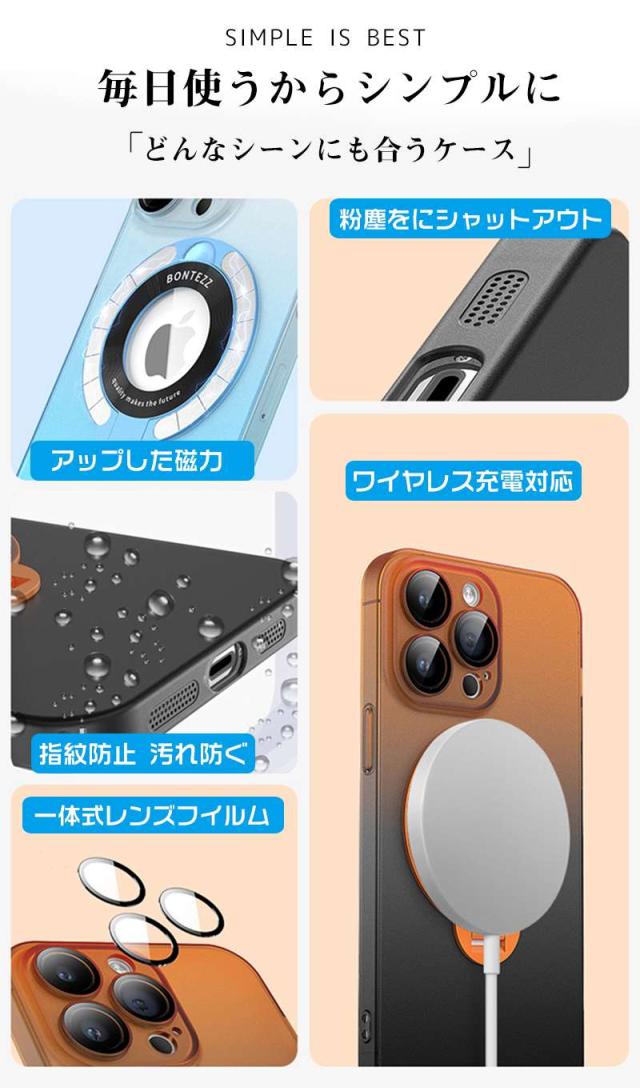 【ケースに入れたまま充電】iPhoneを充電する時は、ケースに入れたままMagSafe充電器を取り付けるか、Qi規格の充電器の上に置くだけです。ワイヤレス充電がこれまでよりもすばやく簡単に完了します。