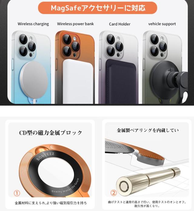 【スタンド機能、両手解放、自由満喫】すべてのMagSafeアクセサリー対応する多機能マジックスタンドは、折りたたんでグルーブに隠して収納させることができます。動画視聴、ビデオ通話、オンライン授業、無限なシーンにスマホを活用出来、スマホに新しいライフスタイルを与えます。