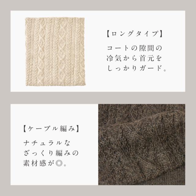 ネックウォーマー レディース 毛糸 冬 暖かい フェアトレード アルパカ アルパカ100% 23ロングネックウォーマーケーブル編み