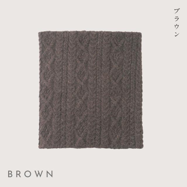 茶系でナチュラルな、ケーブル編みの模様。どんなアウターにも相性よく、ざっくり編みのような素材感に思わずキュンとします。