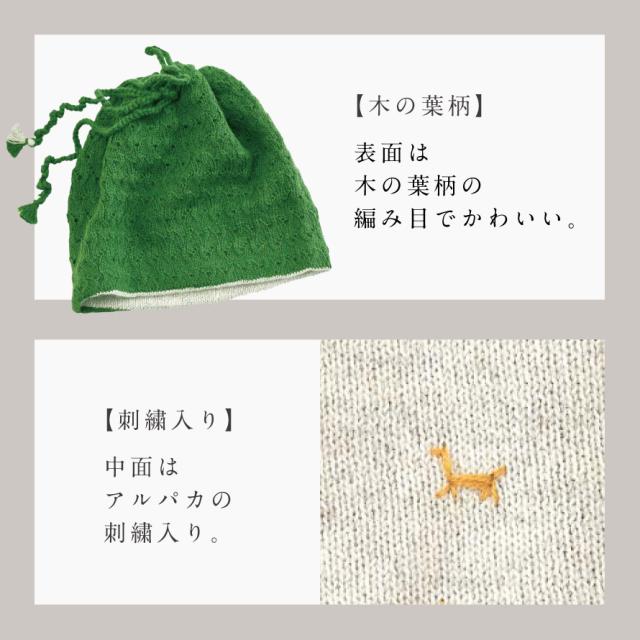 表面は、木の葉柄の編み目のこだわりディティール。重くなりがちな冬コーデのアクセントにもなりますね。中面はワンポイントのかわいいアルパカ刺繍入り。使い方次第で大人っぽくもカジュアルっぽくも、いつものコーデに変化を加えて楽しむことができます。