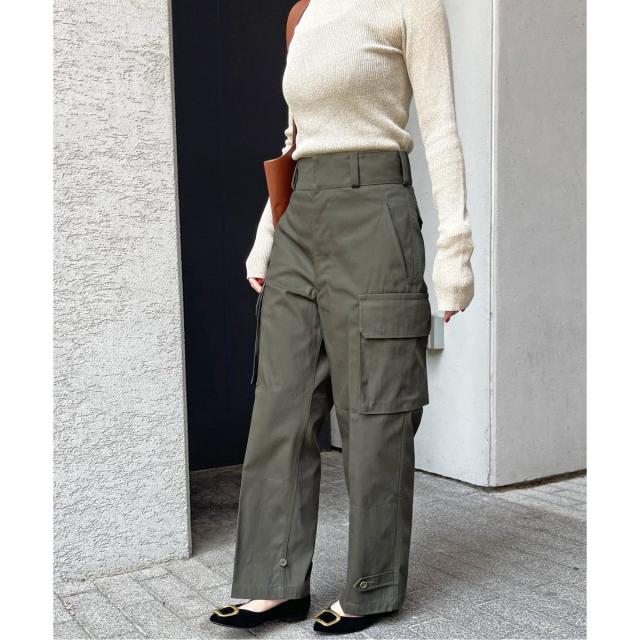 ウエストや腰周りも少し大きめの作りで、程よく体から離れるワイドストレートシルエットは、大人が似合うカッコ良いアーミーパンツです。
