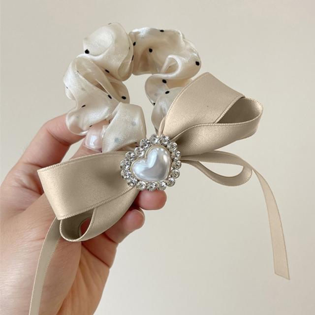 光沢シュシュ ヘアゴム ハート リボン