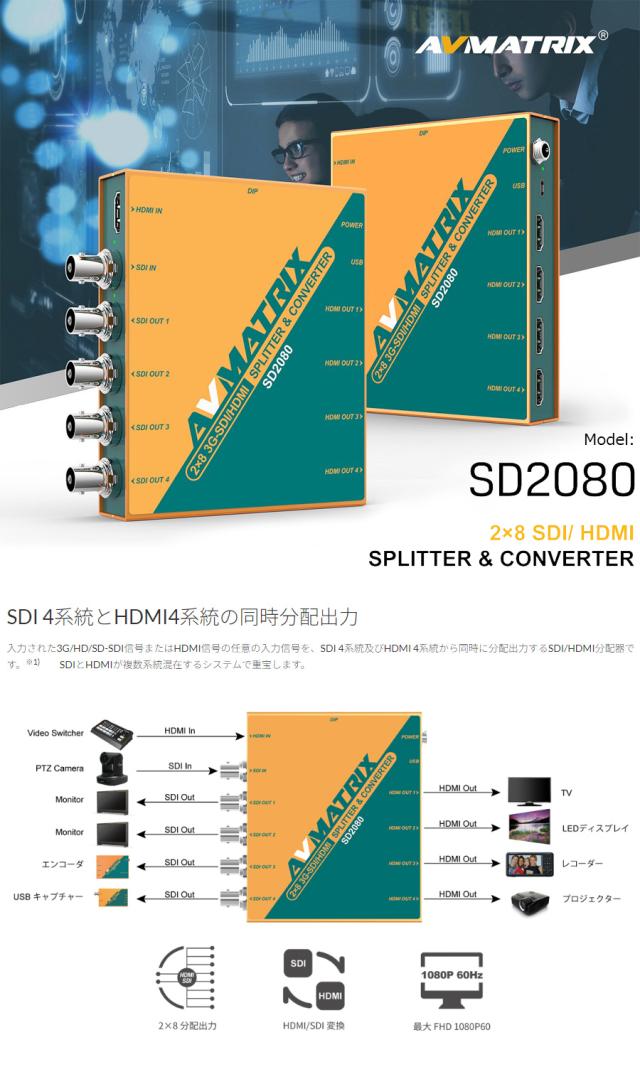 ※キャンセル不可となります ※納期の変動が激しいため、ご注文前に必ず納期お問合せください 【メーカー在庫僅少】 SD2080 SDI 4系統とHDMI4系統の同時分配出力