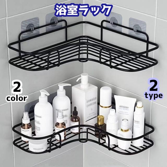 浴室ラック コーナーラック バスラック 穴あけ不要 粘着テープタイプ 三角コーナー 横長 水切り 壁面 浴室 洗面所 キッチン