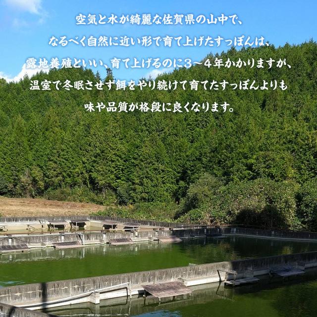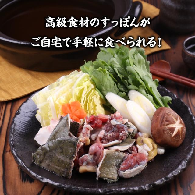 商品のポイント:自然豊かな佐賀県多久の森の美しい水でのびのびと育った純国産のすっぽんです。オリジナルブレンドの飼料で育っているので、臭みがなく、食べやすく、旨味がギュッと詰まっています。調理用に食べやすくカットされており解凍してお鍋に入れるだけですっぽん鍋を楽しむことができます。佐賀県の老舗旅館『大正屋』が推奨している白だしのスープ付きです。