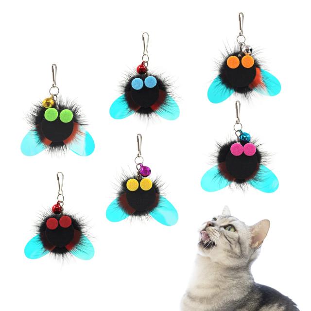 ◆商品名:SONGWAY 猫 おもちゃ 猫じゃらし ねこおもちゃ 昆虫版 もふもふ黒い虫6個 交換用飛ぶ虫<br>
