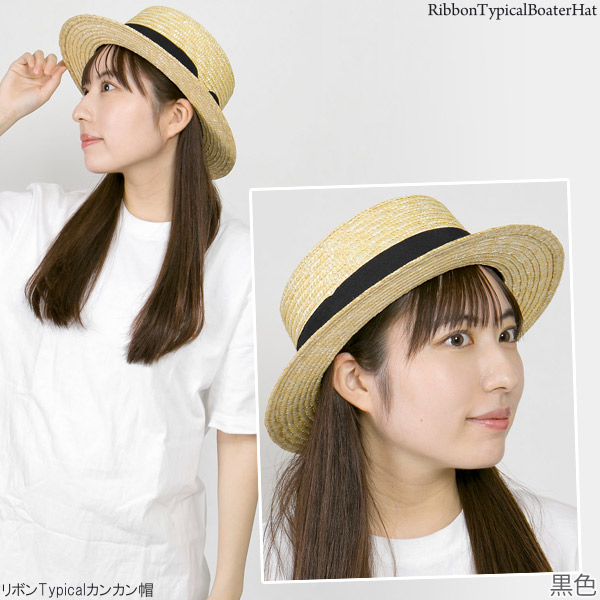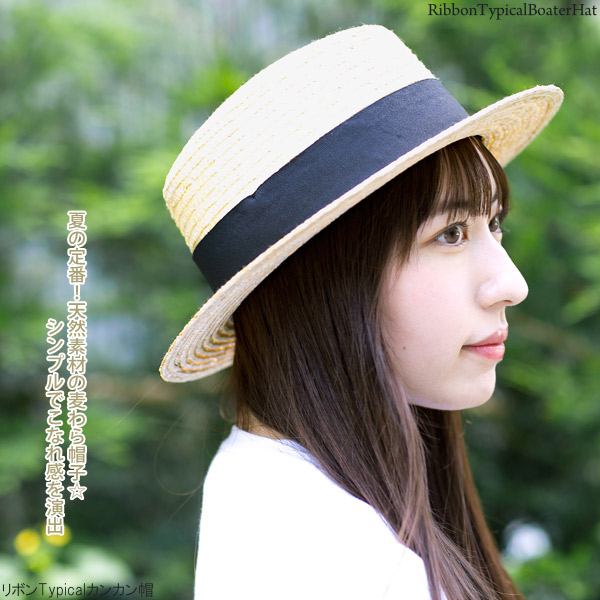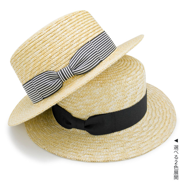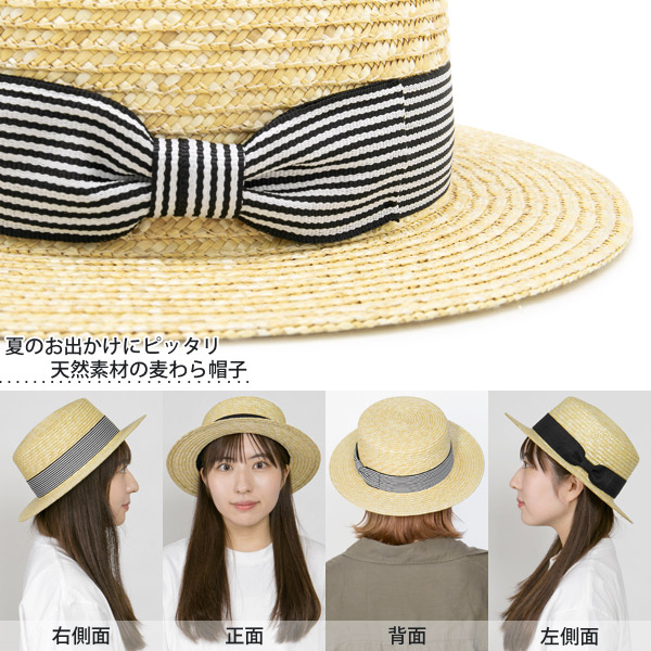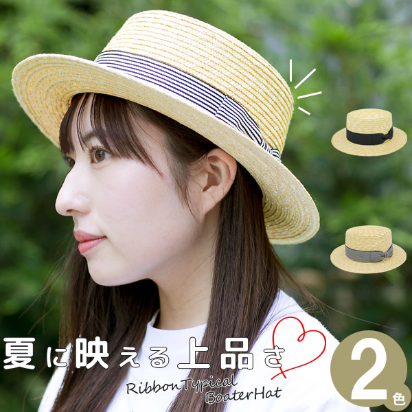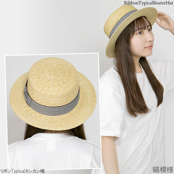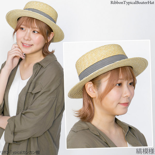 麦わら帽子 レディース ハット 春夏 ストローハット マリン ボーダー サイズ調節 HAT / リボンTypicalカンカン帽