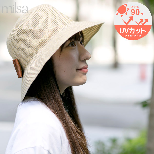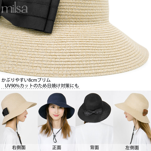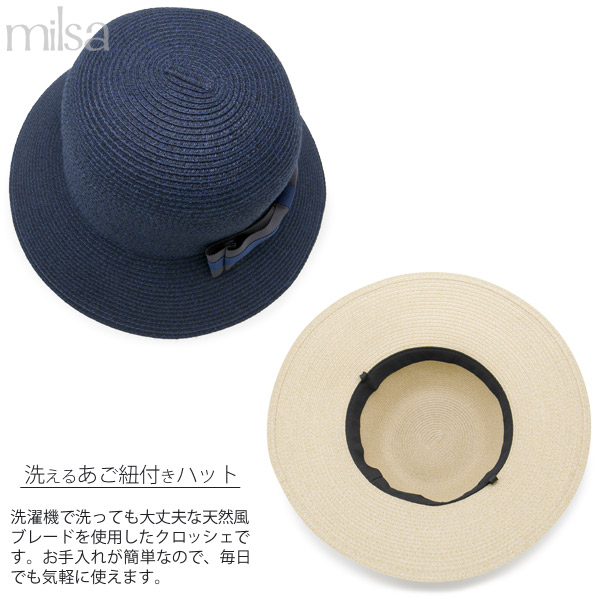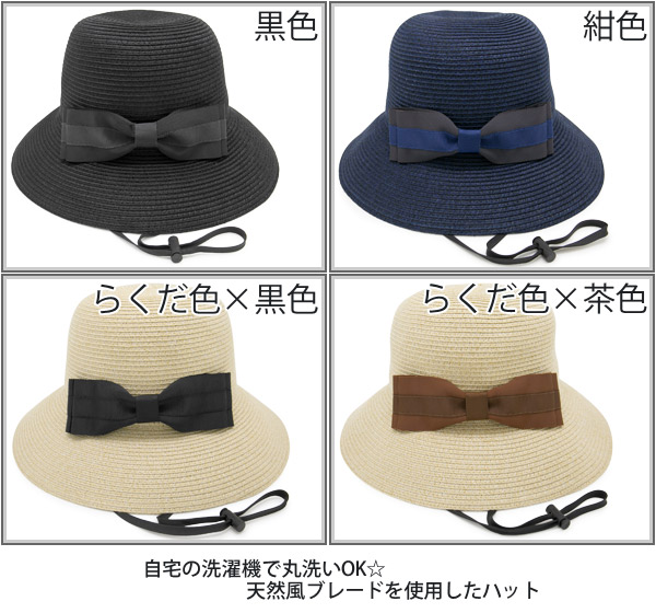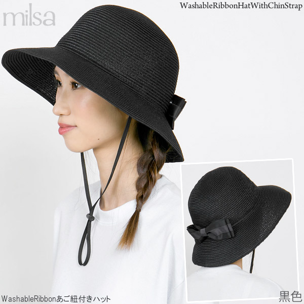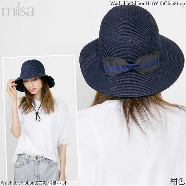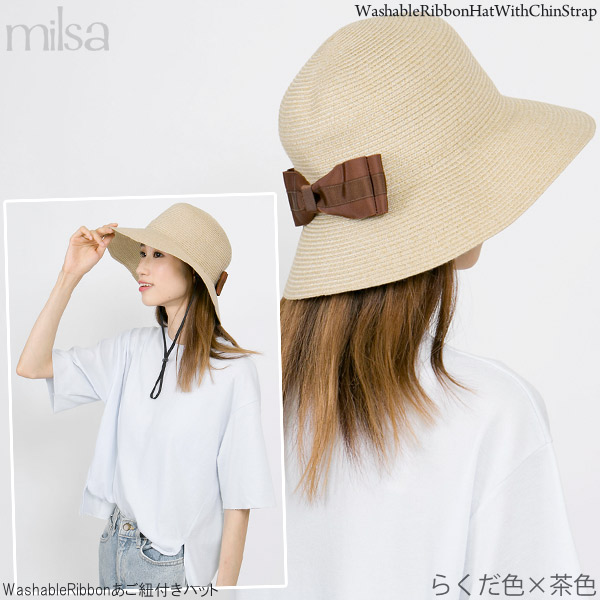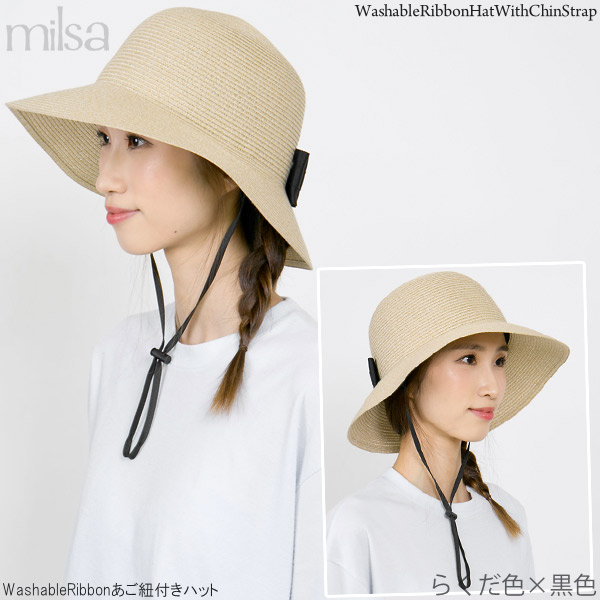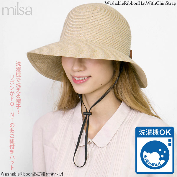 麦わら帽子 レディース [メール便可] 洗濯機で洗える 帽子 春夏 UV 吸汗速乾 / WashableRibbonあご紐付きハット