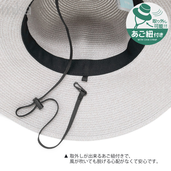 洗濯機で洗えるシリーズから、天然風ブレードを使用したあご紐付きの極太リボンが際立つハットを入荷しました。この帽子は、洗濯機洗い(ネット使用)が可能なので簡単にお手入れができ、いつも清潔に被っていただけます。取外しが出来るあご紐も付属しているので、風が吹いても脱げる心配がなく安心して被れます。さらに、スベリ部分は吸汗速乾素材、UV90%カット、マジックテープ紐でサイズ調整ができるなど機能性も優れています。また、折りたたむことも出来るので、型崩れを気にせずバックに収納して持ち運べ、旅行の際など特に便利にお使いいただけます。トレンドのサンハット型の帽子で、気軽に洗えるので海やプールなどの水辺のシーンにもお勧めです。
