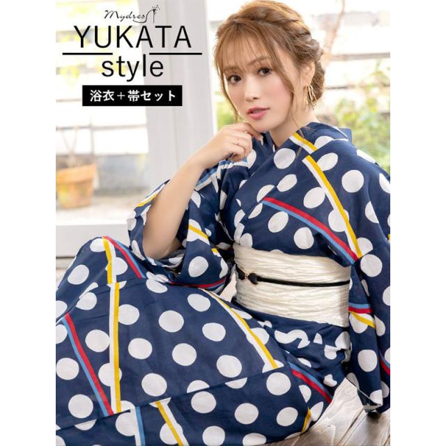 MyDress マイドレス 【浴衣セット】紺地にレトロなドット柄ゆかた2点セット[H2301006]