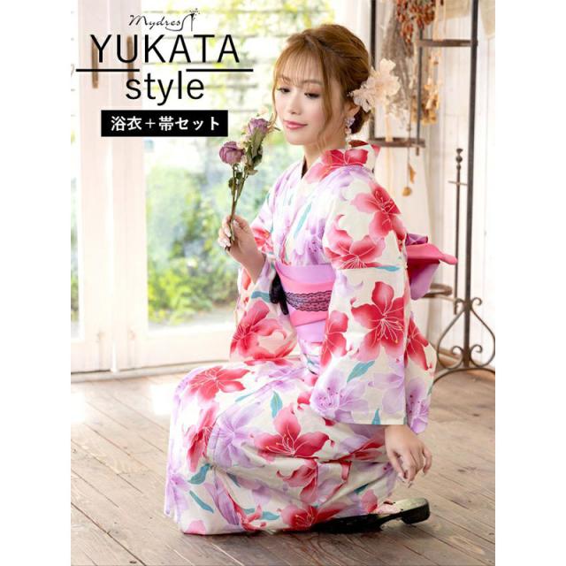 MyDress マイドレス 【浴衣セット】ふんわり淡色百合文様ゆかた2点セット[H2301001]