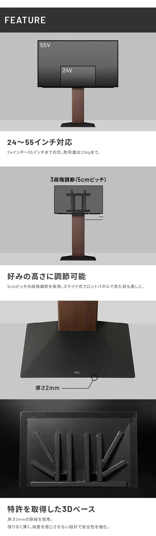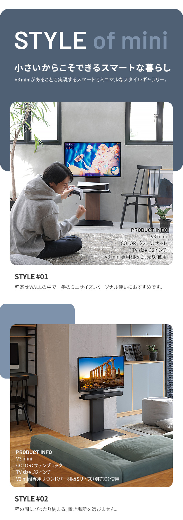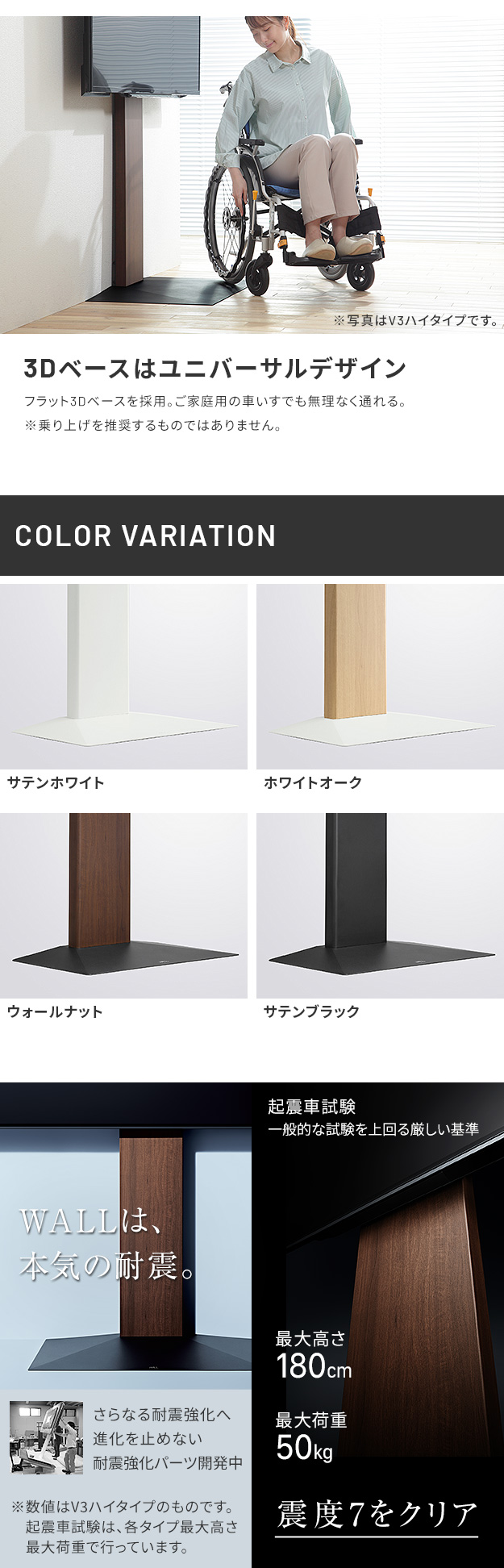 スマート&スモールモデル 壁寄せ テレビスタンド WALL V3 mini 【送料無料】 おしゃれ インテリア コンパクト 24インチ 32インチ 55インチ 小さめ 小さいテレビ ハイタイプ ロータイプ 高さ調節 スリム 壁掛け テレビボード テレビ台