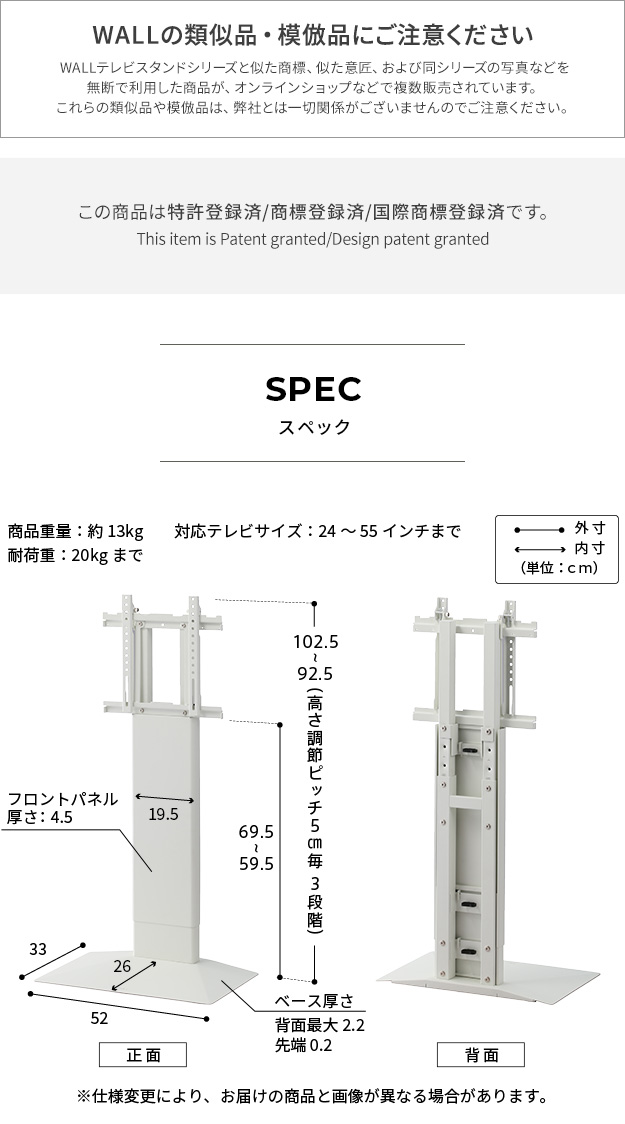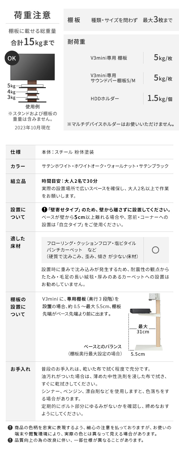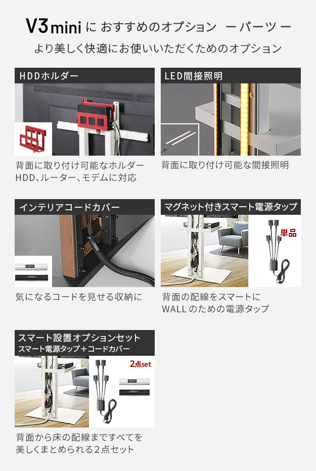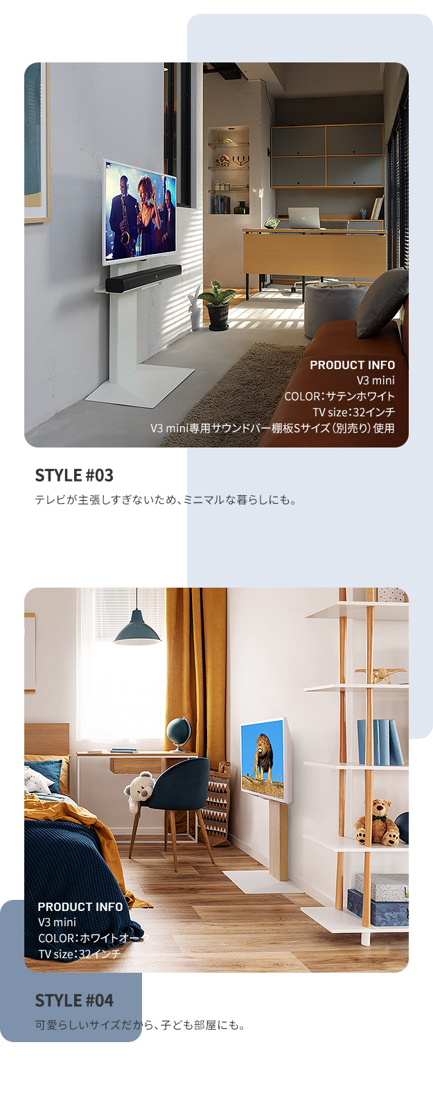 スマート&スモールモデル 壁寄せ テレビスタンド WALL V3 mini 【送料無料】 おしゃれ インテリア コンパクト 24インチ 32インチ 55インチ 小さめ 小さいテレビ ハイタイプ ロータイプ 高さ調節 スリム 壁掛け テレビボード テレビ台