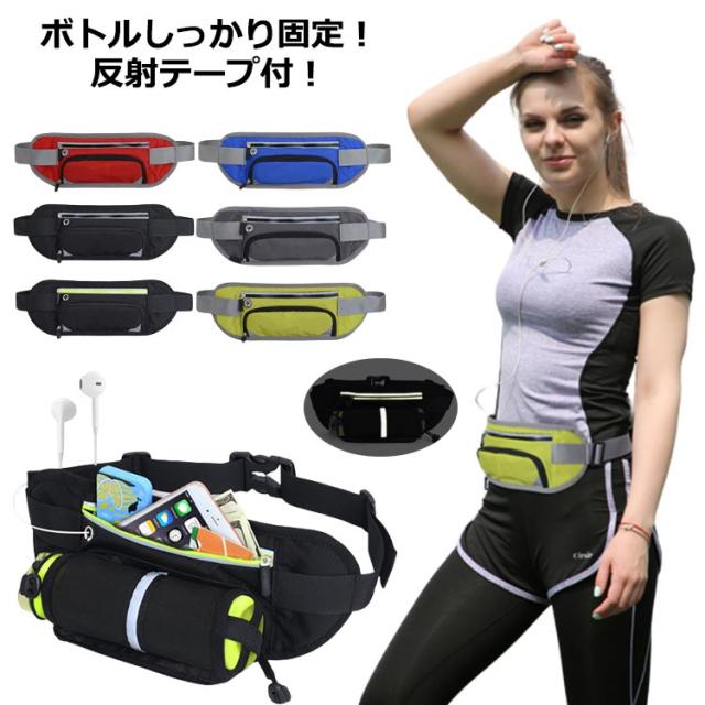 ランニングポーチ ランニング ポーチ バッグ ウエストポーチ 揺れない 反射テープ ランニングバッグ ペットボトルホルダー ボトルポーチ iPhone ウエストバッグ ウォーキング ランニングベルト 防水 ボディバッグ メンズ レディース 軽量 送料無料