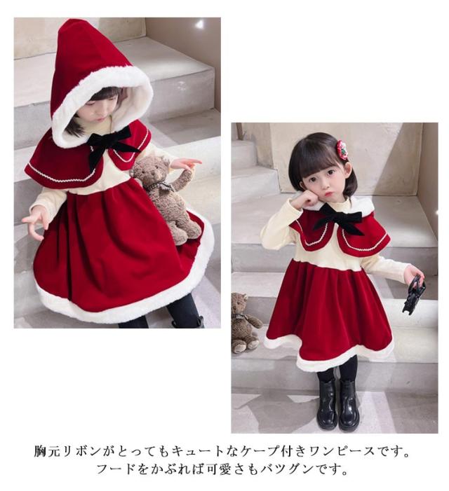 サンタ コスチューム ベビー キッズ 女の子 サンタクロース 衣装 子供 子ども ケープ 肩掛け ロンパース ワンピース サンタ服 ベビー服 コスプレ クリスマス 女の子 男の子 着ぐるみ 90 100 110 120 130 サンタコス サンタ 赤ちゃん 服 もこもこ 仮装 サンタ帽子