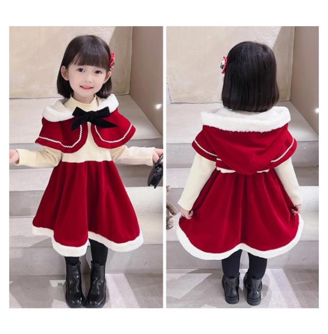 | 90-130cm 可愛いワンピースタイプ 胸元リボンがとってもキュートなケープ付きワンピースです。フードをかぶれば可愛さもバツグンです。 | |
