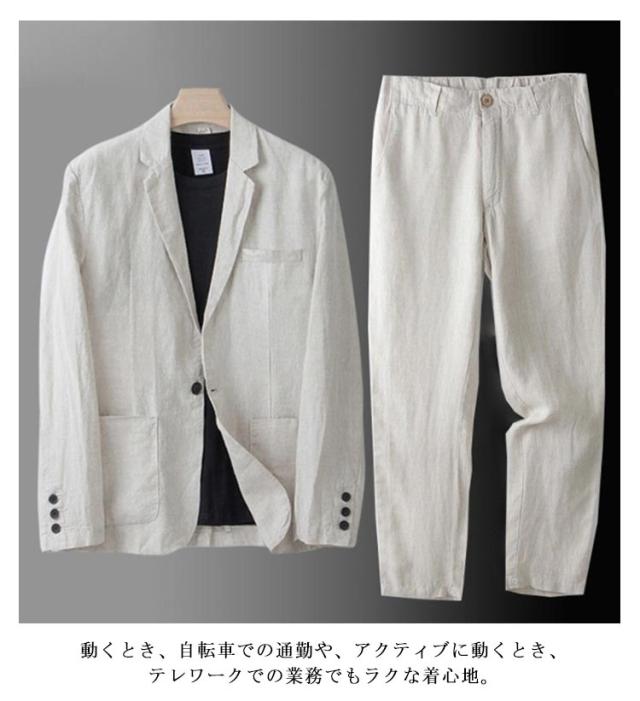 スーツセットアップ 2ピーススーツ メンズ リネン 長袖 テーラードジャケット スラックス セット 綿麻素材 ゆったり カジュアル 一つボタン ブレザー ボトム スーツセットアップ上下 春服 夏物 秋物 通勤 二次会 成人式 卒業式 紳士服 大きいサイズ M-4XL