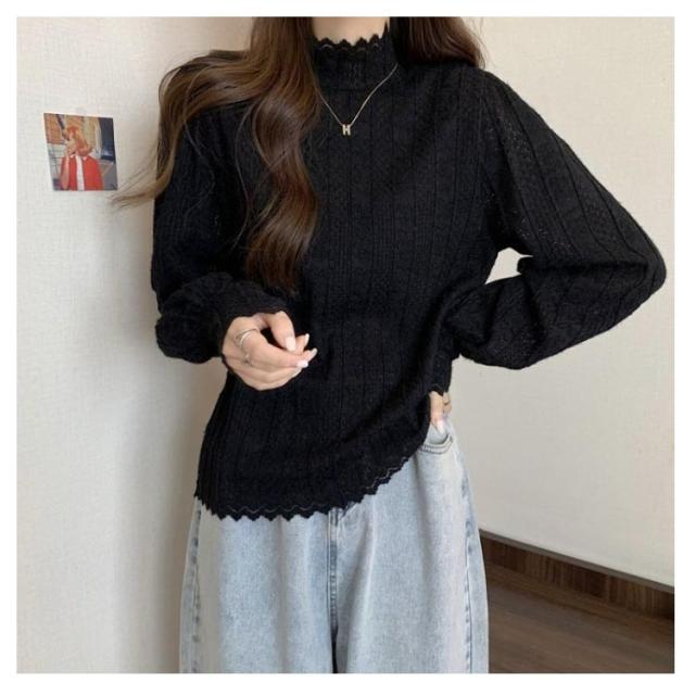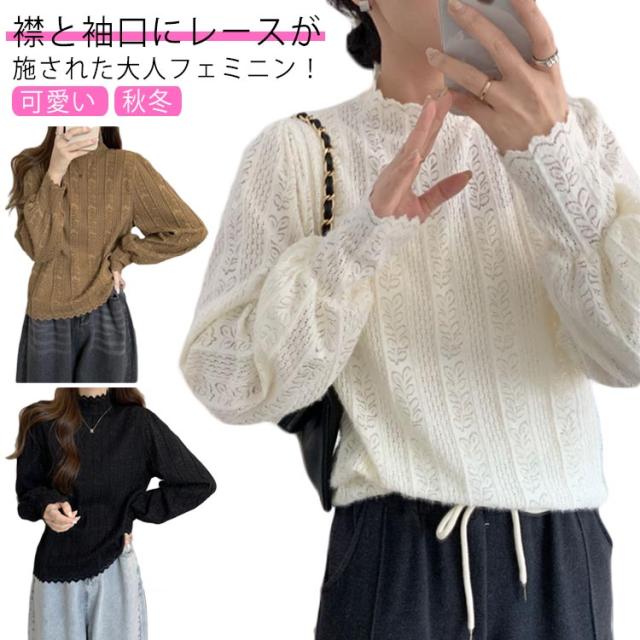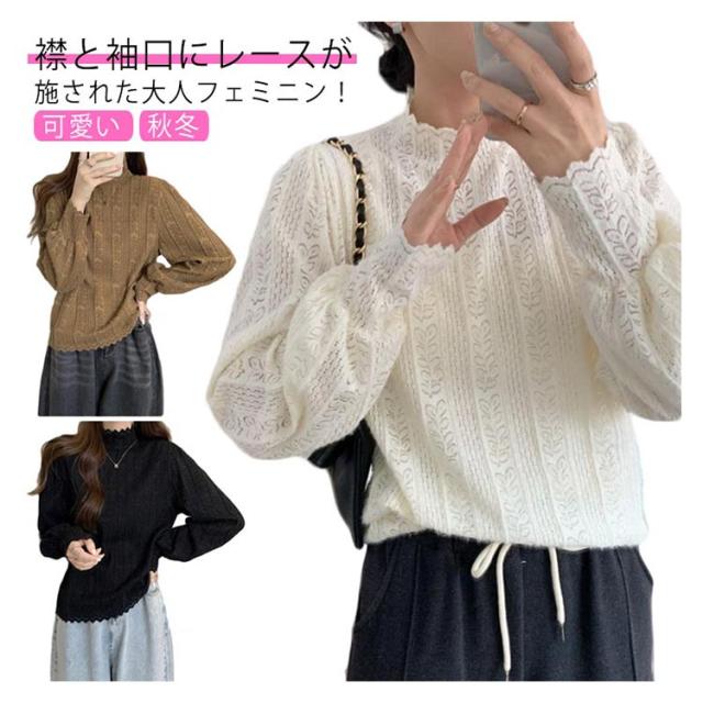 ニットトップス レディース ニット 長袖 ニットセーター レース インナー ふわふわ もこもこ 下着 秋冬 秋服 冬服 春服 韓国風 重ね着 着回し きれいめ カジュアル 大人 シンプル 可愛い おしゃれ お出かけ デイリー 普段着 オフィス 通勤