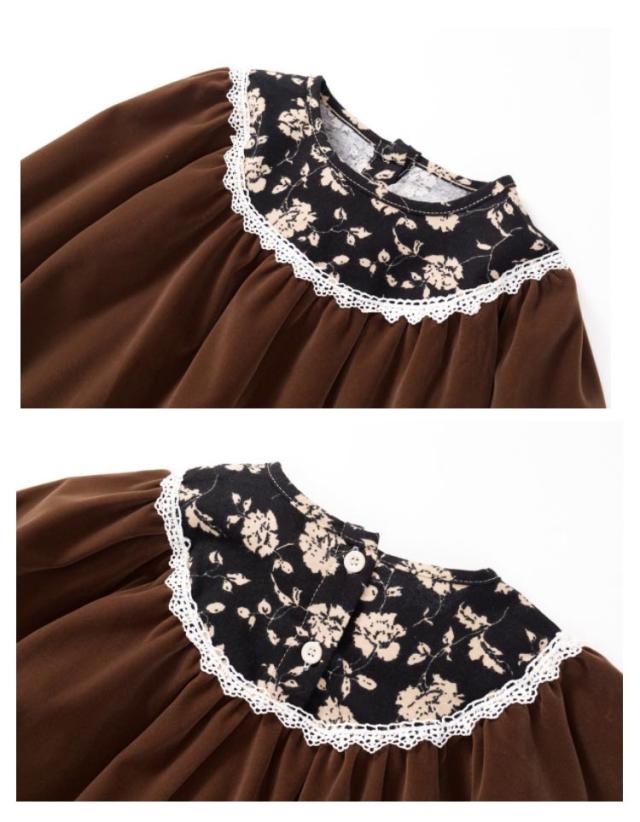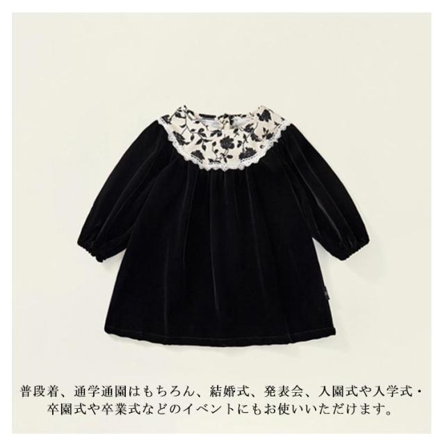 送料無料 女の子 ジュニア 140 卒服 フォーマル 子供服 長袖ワンピース フリル 韓国 子供服 ベルベット ドレス 発表会 演奏会 入園式 卒園式 入学式 パーティ こどもドレス 100 110 120 130 140cm 花柄 ブラック ジュニア 可愛い