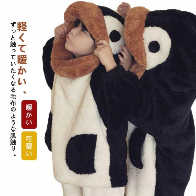 着る毛布 着ぐるみ ペンギン キッズ パジャマ 子供用 ジュニア 可愛い ナイトウェア リラックスウェア 部屋着 ルームウェア 防寒 暖かい 上下セット ワンピース 長袖 ベビー服 仮装 年賀状 写真撮影 インスタ映え