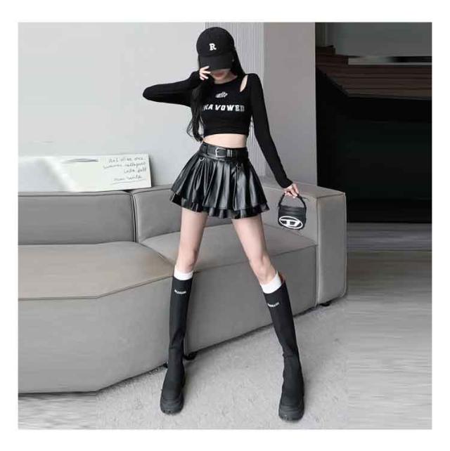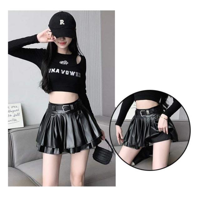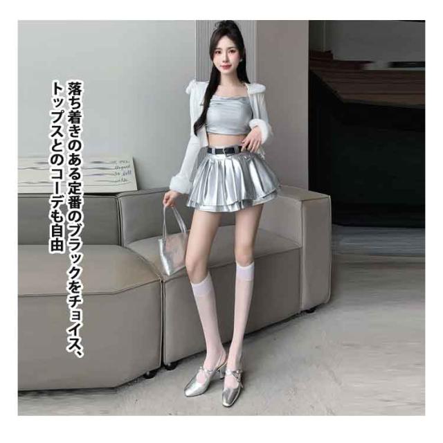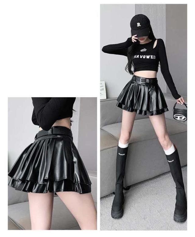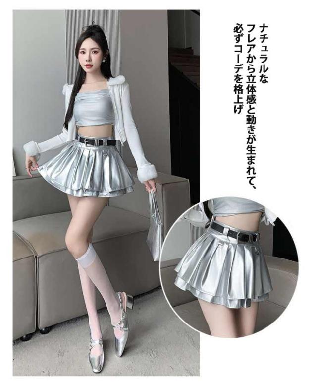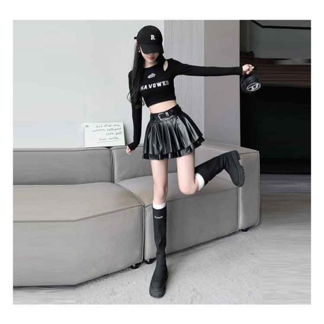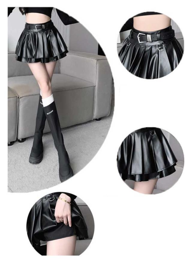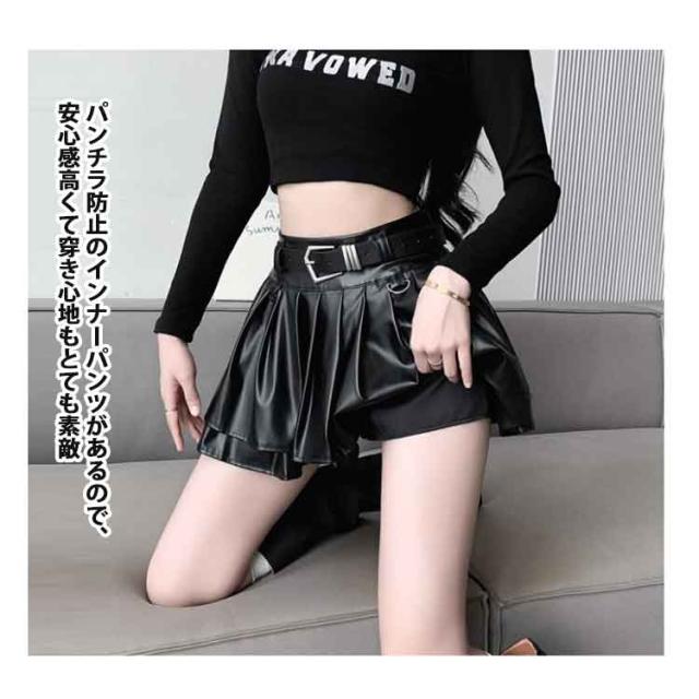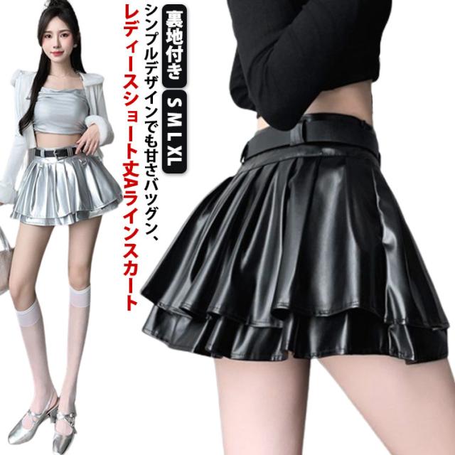 レザースカート レディース フェイクレザー スカート PUスカート ショートスカート PUレザー ミニスカート 無地 ハイウエスト Aライン ショート丈 裏地付き ボトムス ベルト付き 細身 着痩せ シンプル カジュアル 韓国 美脚 脚長 キレイめ 秋