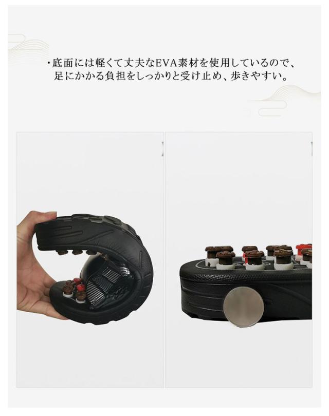 | ・気軽に履いて、足裏マッサージ♪ ・歩くたび、インソールの凹凸が足裏を刺激!自重でスッキリ指圧! ・履いているだけで足の裏のつぼを刺激して、自然に足裏を快適マッサージ♪ ・大きく隆起した突起がガツンとした刺激。普段PCやスマホ操作が長い方にオススメ。 ・底面には軽くて丈夫なEVA素材を使用しているので、足にかかる負担をしっかりと受け止め、歩きやすい。 | |