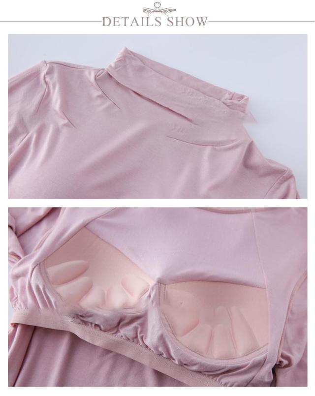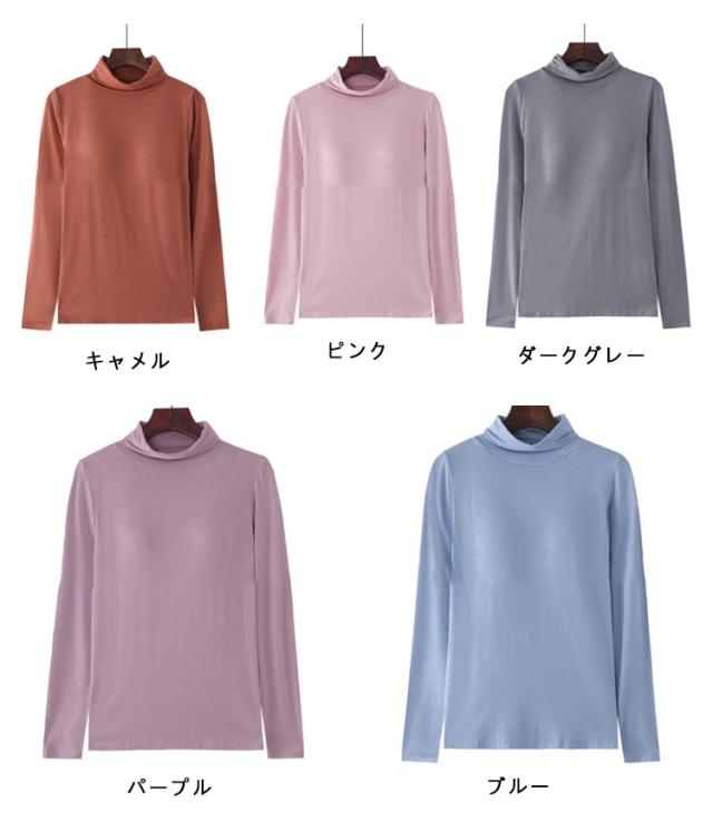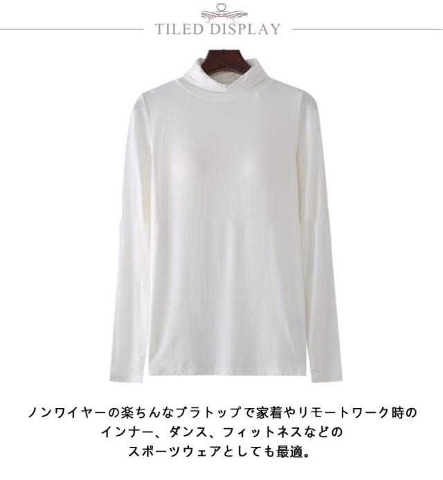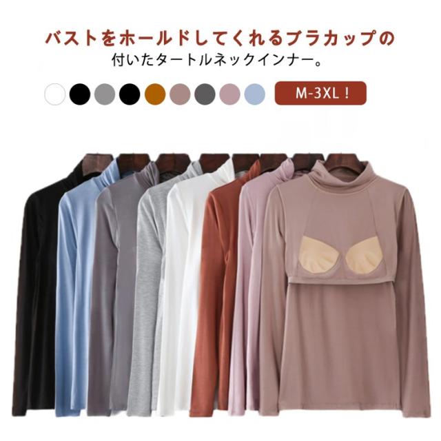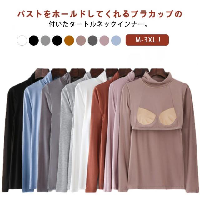 カップ付き ブラトップ インナー レディース カップ付きインナー タートルネック ハイネック カットソー Tシャツ 大きいサイズ 肌着 部屋着 アンダーウエア ストレッチ 伸縮性 締め付けない シンプル 無地 女性 春 秋 冬 M-3XL