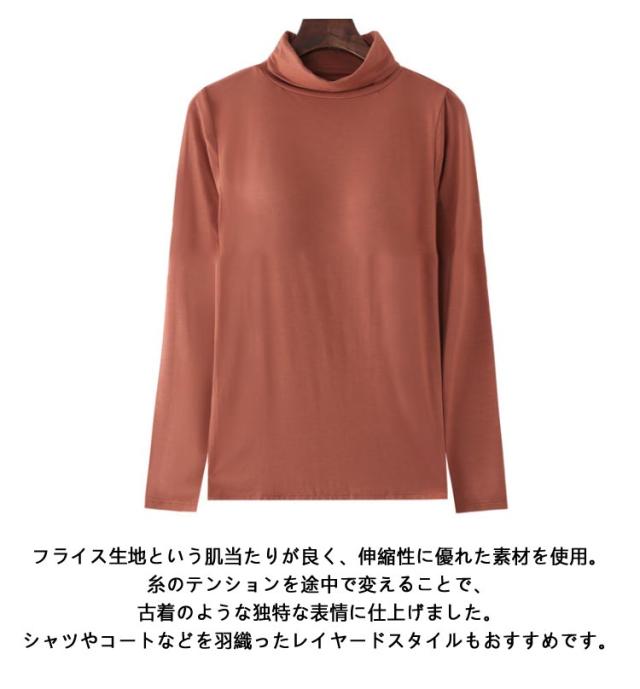 | M-3XL!バストをホールドしてくれるブラカップの付いたタートルネックインナー。 ノンワイヤーの楽ちんなブラトップで家着やリモートワーク時のインナー、ダンス、フィットネスなどのスポーツウェアとしても最適。 生地は混紡モダールでさらりとした肌触りに吸水性・速乾性にも優れています。 お出掛け着、部屋着、インナー、ナイトウエアなど様々なアイテムになる優れモノです。 ハイネックのロングスリーブカットソー。 フライス生地という肌当たりが良く、伸縮性に優れた素材を使用。糸のテンションを途中で変えることで、古着のような独特な表情に仕上げました。シャツやコートなどを羽織ったレイヤードスタイルもおすすめです。 | |