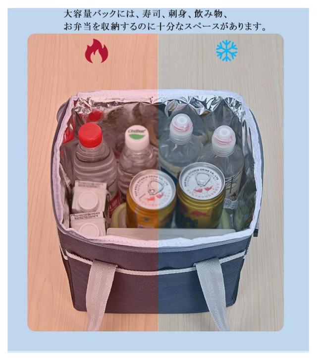 | 大き過ぎることなく、ちょうど良いサイズです。 しっかり安定した形でたっぷり収納できます。女性も無理なく持てます!そこまで重くなく、荷物もたくさん入ります!自転車配送員の方には超お勧めです。 大容量バックには、寿司、刺身、飲み物、お弁当を収納するのに十分なスペースがあります。バッグの重さは、軽量設計なので、男女問わずお使いいただけます。また折り畳み可能で収納やすくなる。 | |