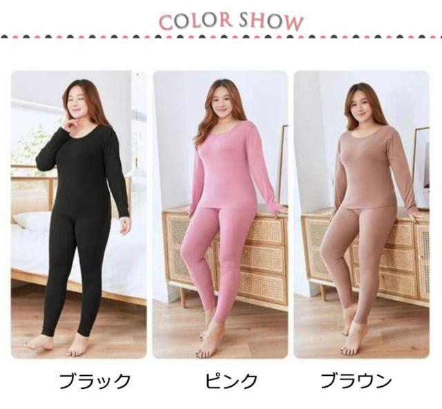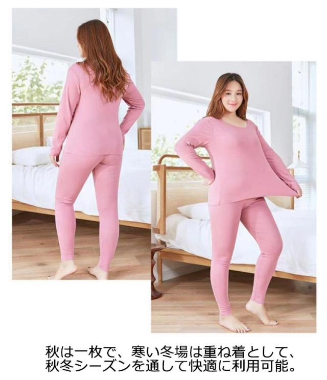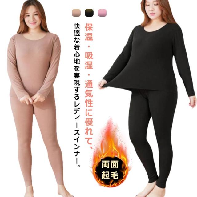 L−6XLサイズ!肌着 両面起毛 上下セット インナー レディース アンダーシャツ 吸湿 通気性 防寒 インナーシャツ パンツ 下着 秋冬用 長袖 クルーネック あったか 保温インナー 暖かい アンダーウエアセット 保温 ズボン ストレッチ
