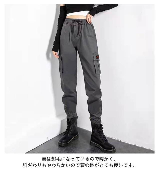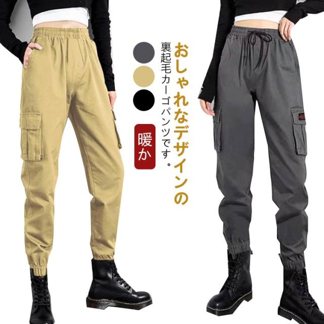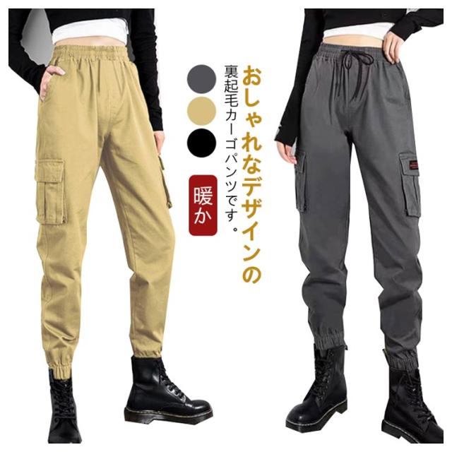 レディース 大きいサイズ カーゴパンツ カーゴパンツ 冬 ウエストゴム 裏起毛付き 長ボトムス 暖か スリム 裏起毛なし カジュアル 秋冬 大きいサイズ 裾ゴム 軽量 ストリート 着回し シンプル 防寒パンツ