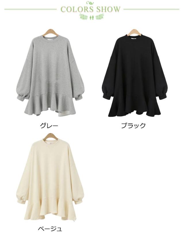 トレーナー レディース 裾フリル 長袖 トップス 大きめ オーバーサイズ カジュアル ゆったり 体型カバー トレンド オシャレ 大人 可愛い 韓国ファッション